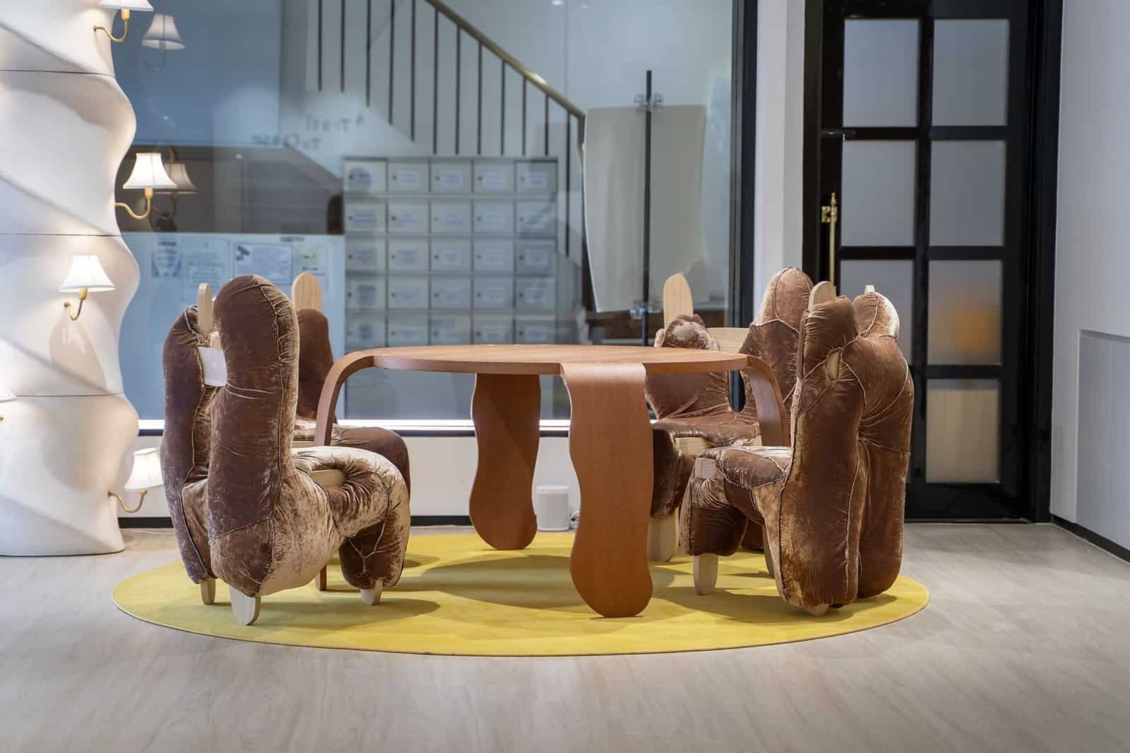Another thread that runs through the exhibition is the use of amorphous, blobby shapes, running counter to the rigidity and symmetry that characterises more conventional furniture.
