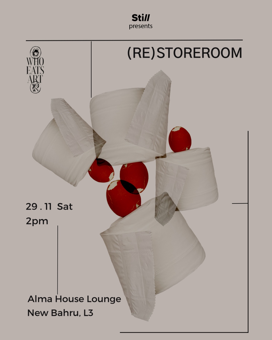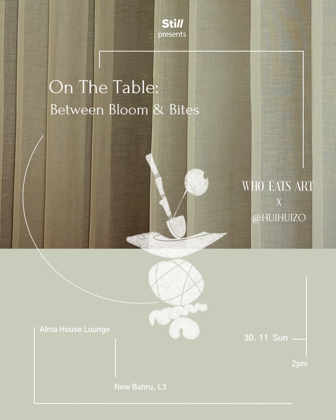 Tasting Room ft. @WhoEatsArt (RE)STOREROOM Through this experience guided by @whoeatseart, the humble storeroom reveals itself as a (re)storeroom — a space to revisit what we’ve kept, what we’ve forgotten, and what still nourishes us. 🗓 29.11 | 2pm 📍 Alma House Lounge, New Bahru, Level 3 #StillScape02 #TastingRoom #ReStoreroom#FoodArt #StillAtAlmaHouse - Ticket purchase via […]