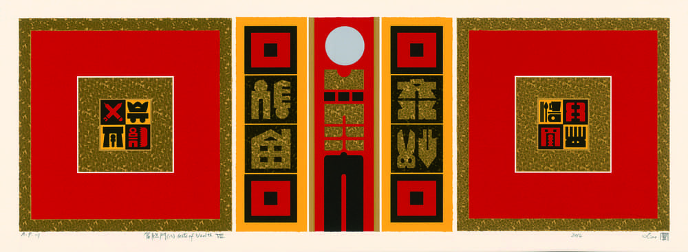 Widely regarded as the “father of modern Taiwanese printmaking,” Liao constructs a personal visual language from traditional motifs and colour palettes, assembling them into dense, cosmological compositions.