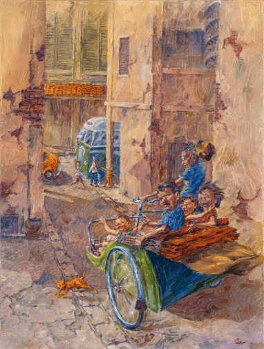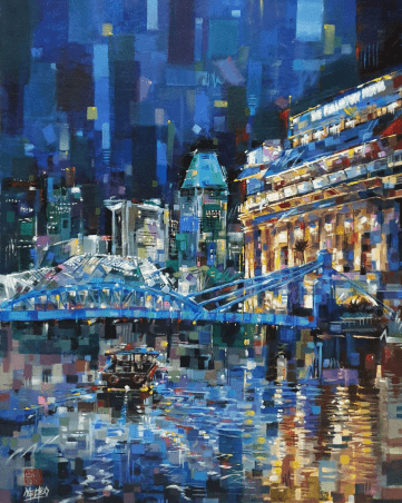 Chang and Teo prove that there is no need for formal art school training. They attribute their unique styles to their life experiences and having to forge their own artistic paths the hard way. Even between father and daughter, it is apparent that their artworks are only alike in their choice of subject matter and accomplishment. Everything else — their styles, their palettes, their perspectives on their respective Singaporean muses — differs.
