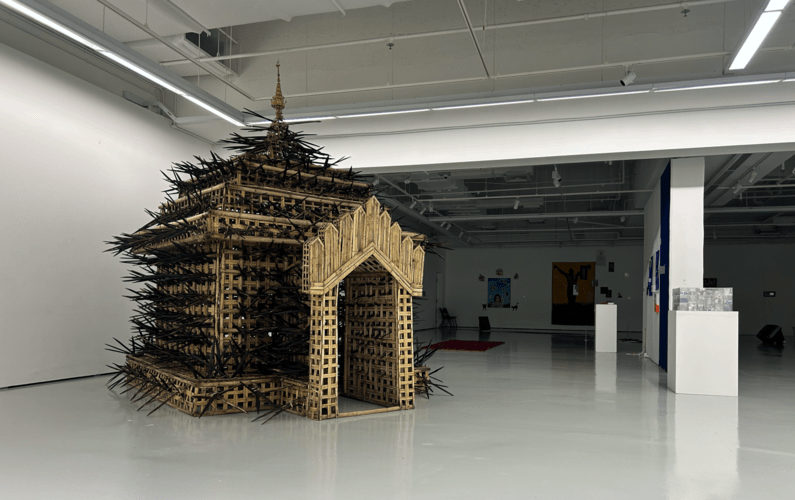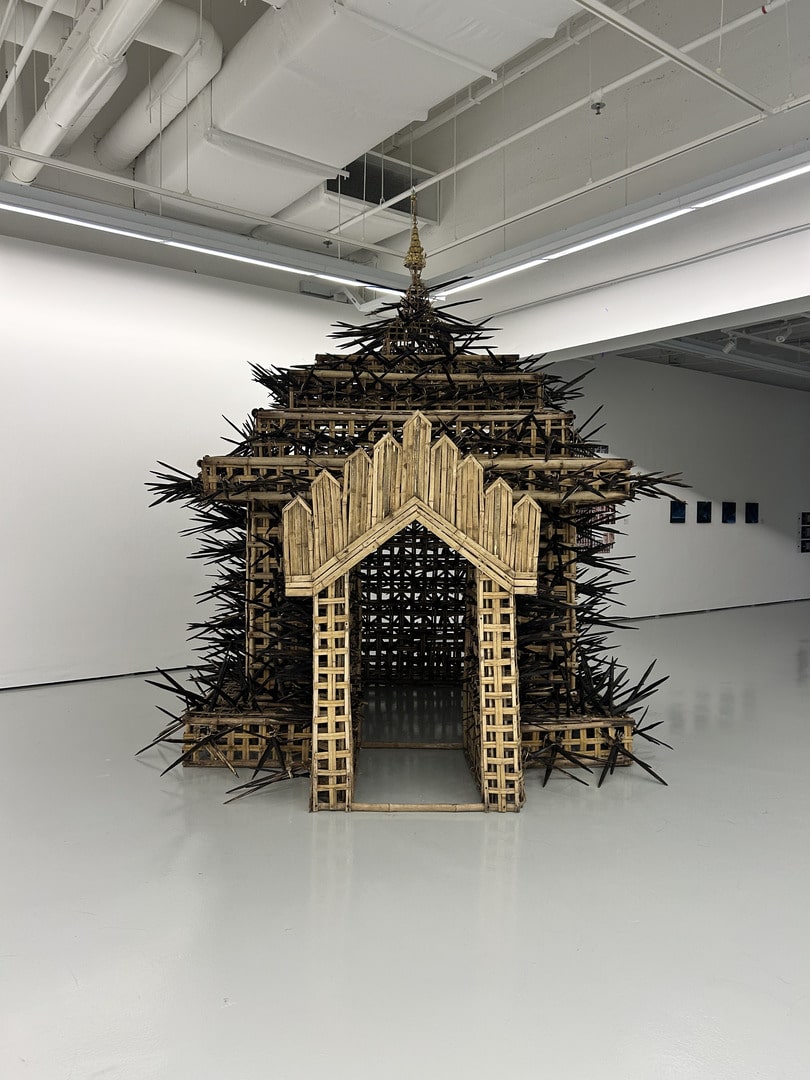 Once in Singapore, Eindri rebuilt the structure with the help of a lecturer and volunteers, some of whom were from the local Burmese community. They resharpened and finished the spikes before assembling the work for exhibition. The process underscored the collective effort behind the piece and the determination required to bring a work shaped in Myanmar’s fraught landscape into an international context.