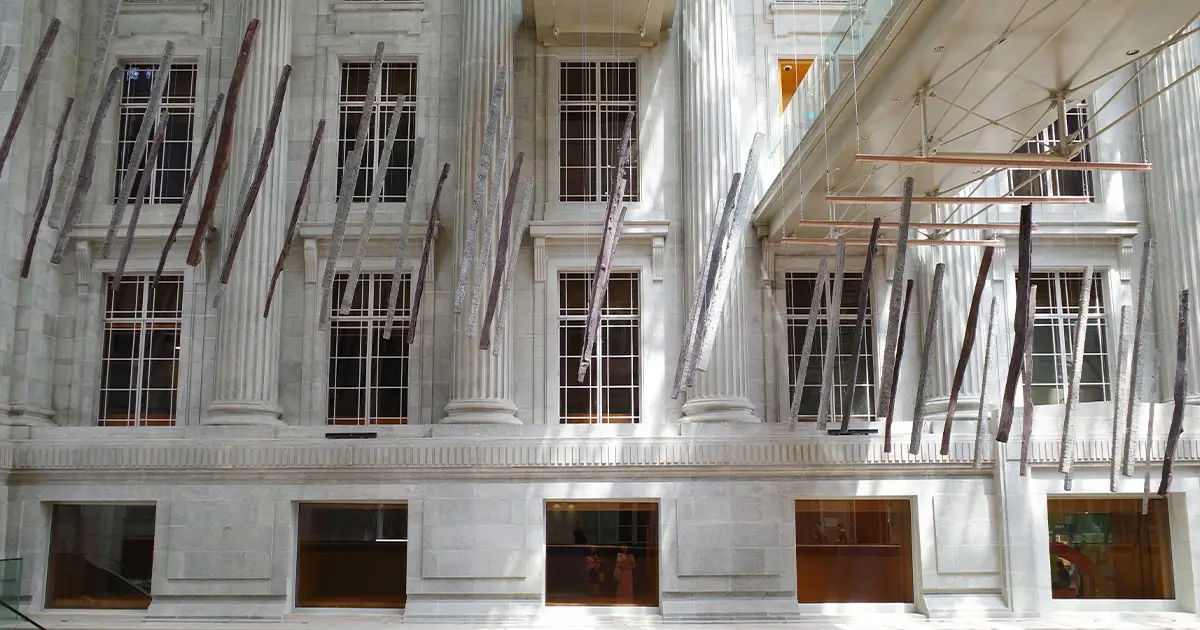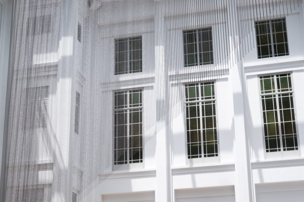 Created in collaboration with members of the Jrai community, Angin Cloud — comprising wooden sculptures, hammocks, and suspended pillars resembling trellises used on peppercorn plantations — was a poetic response to the modernisation transforming Vietnam’s Central Highlands. For Eidolon, meanwhile, artists Vong Phaophanit and Claire Oboussier used metallic beaded link-chains to create a shimmering, ghostly curtain in the Gallery’s City Hall Courtyard, hoping to draw attention to the simple bead form’s ubiquitous presence across the world’s cultures.